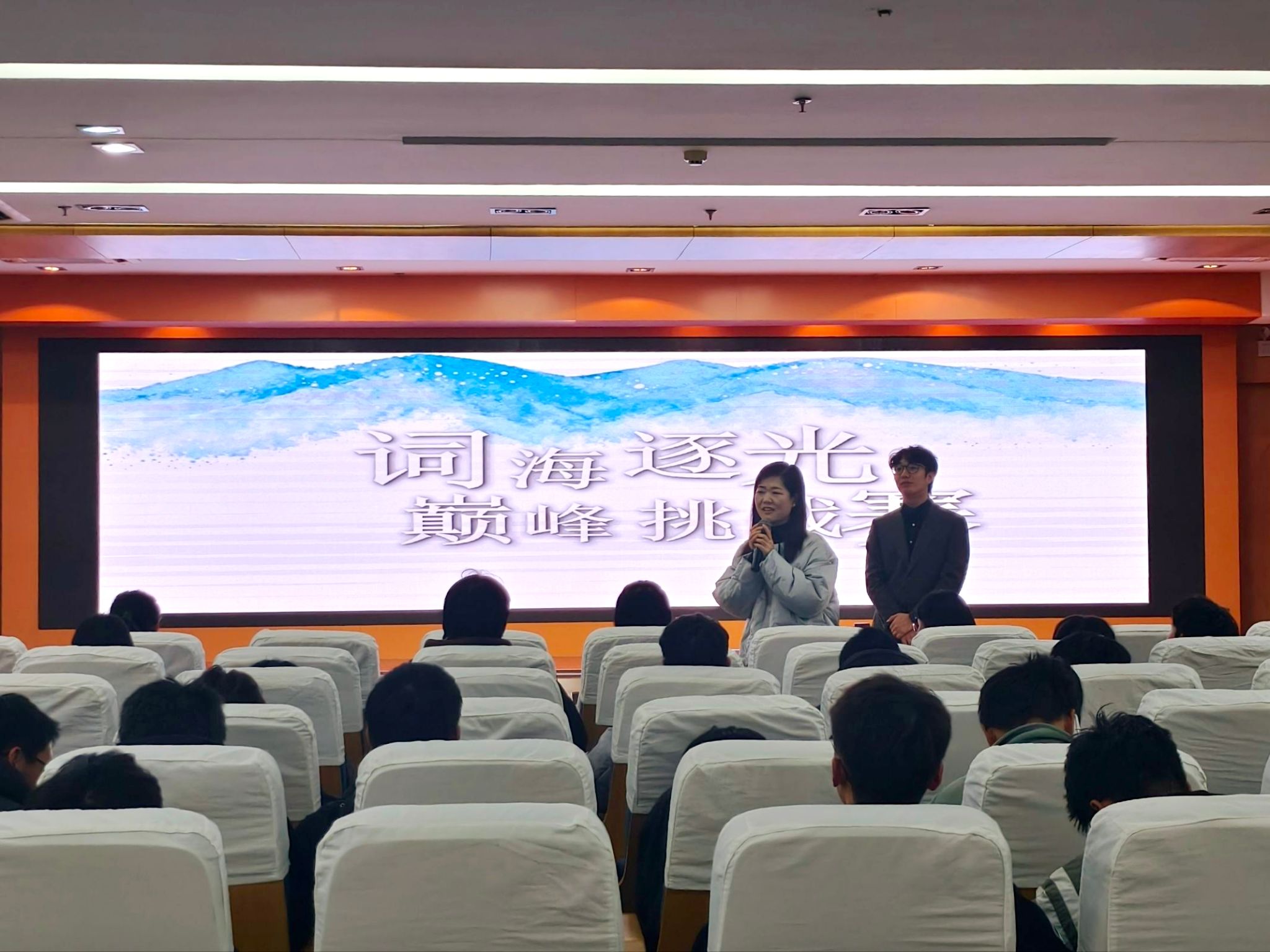 为进一步激发员工英语学习积极性,提高学习趣味性,推进优良学风建设,12月17日晚,beats365“一站式”员工社区于滨江校区(北区)图书馆三楼报告厅举办第九届“我爱记单词”英文单词大赛决赛。beats365邀请公共基础公司外语教研室蒋甜、高洁、何珊珊三位老师担任比赛评委。 勇者相遇,初试锋芒。公司第九届“我爱记单词”英文单词大赛初赛于11月26日正式拉开帷幕。本次初赛采用笔试形式,吸引了来自公司百余名同学积极参与,最终来自2023级、2024级和2025级的10名选手脱颖而出,晋级决赛。