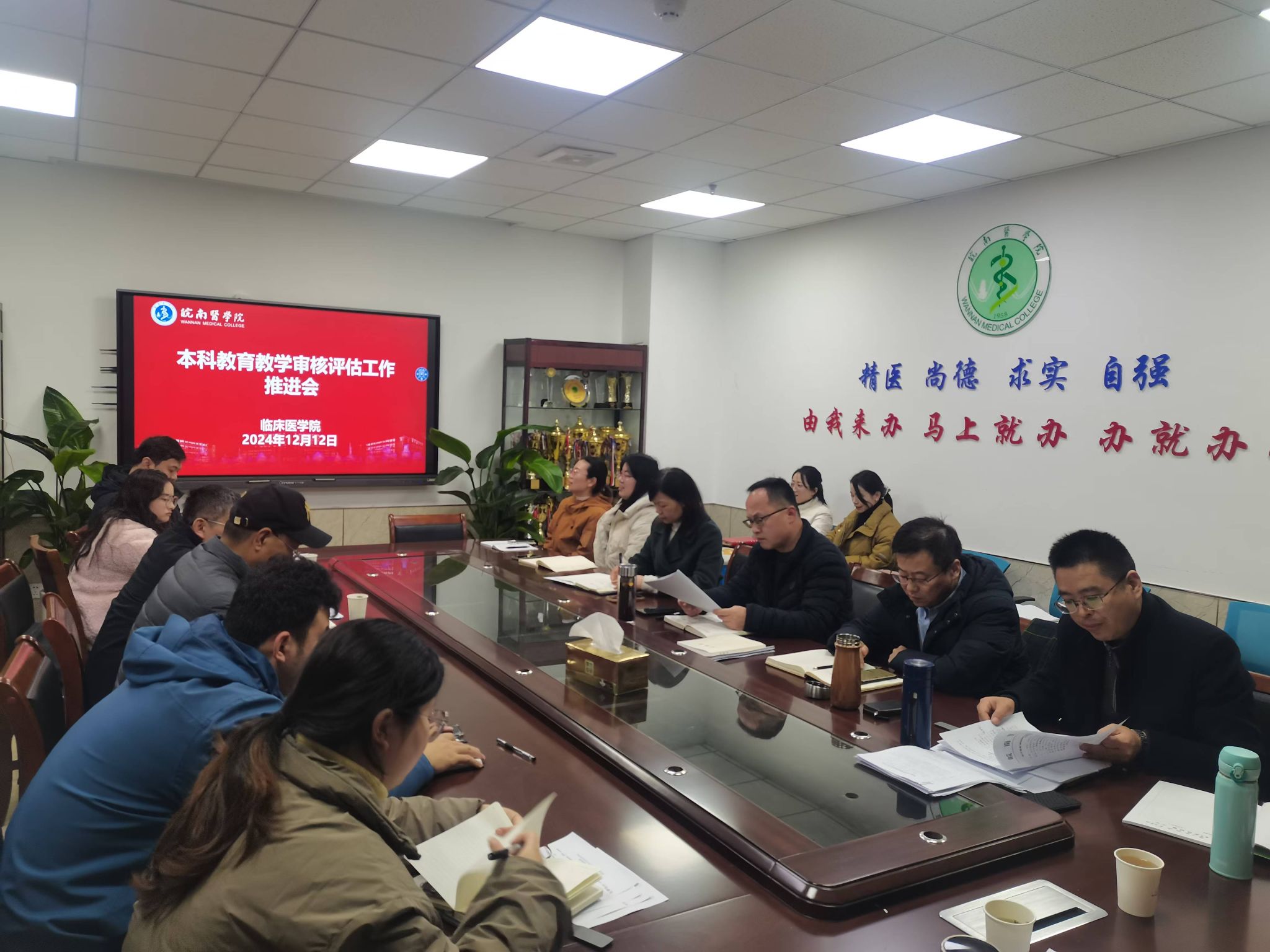 陈祥攀首先汇报了公司前期关于审核评估准备工作开展情况,同时对公司《关于发布2024/2025-1学期本科公司产品审核评估工作任务的通知》内容进行解读,重点介绍了二级公司培养方案、课程教学大纲、课程材料、试卷材料、实验室档案材料、实习(见习)材料等教学档案的整理和自查,并从公司、教研室、实验实训中心、教学医院、实习医院等各个维度进行任务分解和布置。许力强调,审核评估工作要做到人人有责、人人担责、人人尽责,务必真抓实干,保质保量完成任务。方基勇总结时指出,审核评估工作是对人才培养和公司产品质量的一次全方位检验,全院师生要从思想上认识到评估工作的重要性和必要性;要统一思想、凝聚共识,扎实推进、全员参与、全线协作。
