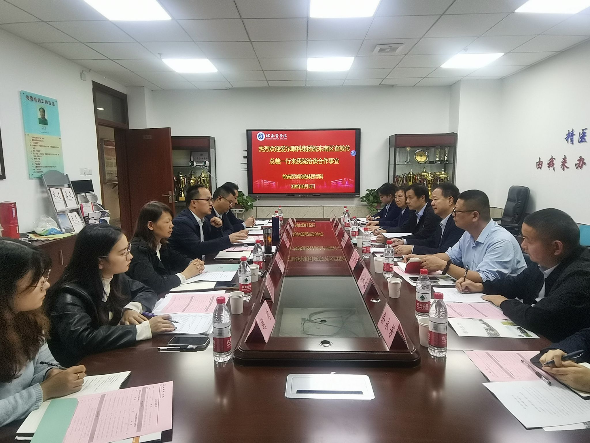 10月15日,爱尔眼科皖东南区总裁查敦传与乐文军、吴志兵等来院深化合作交流。方基勇介绍了公司近年来在人才培养、党建工作、学科专业建设、志愿服务品牌项目、公司产品改革等方面取得的成效。查敦传介绍了医院的人才培养与引进、高端仪器设备、新技术运用、志愿服务活动等工作开展情况以及2025年招聘计划。最后,双方就老员工社会实践基地建设、党建品牌项目创建、科研项目申报、毕业生就业创业等多方面展开深入交流并达成合作共识。