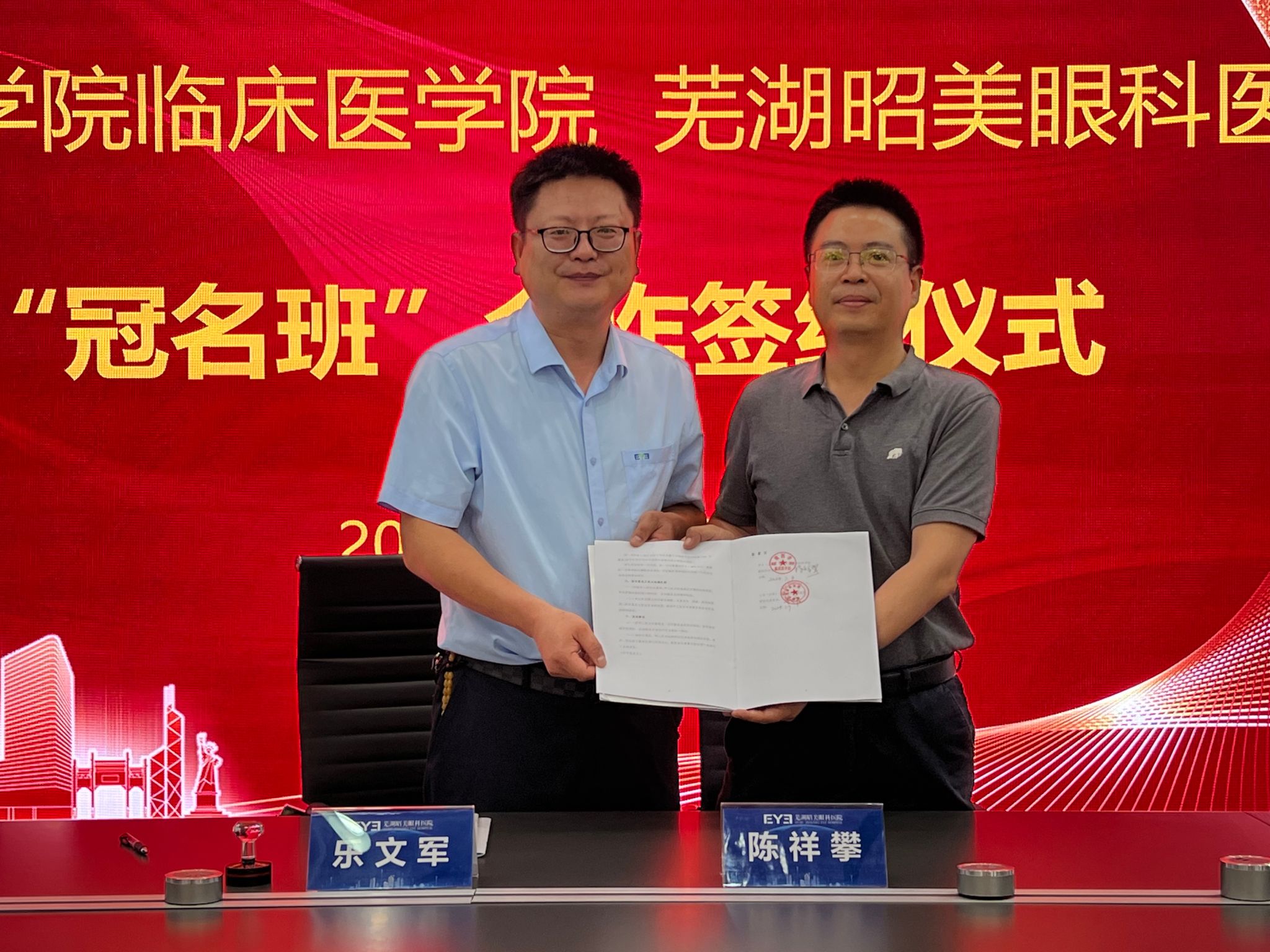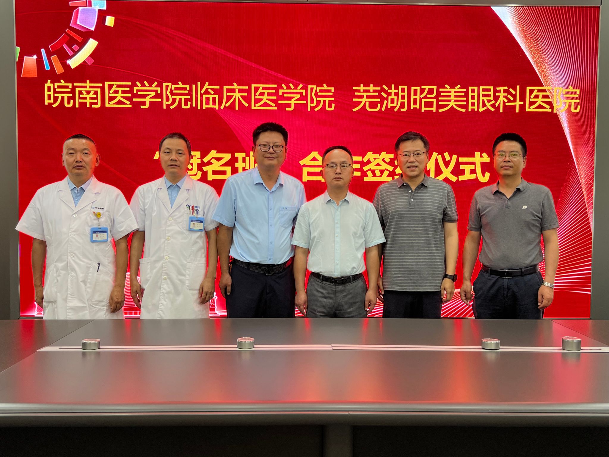 7月9日,方基勇、许力等一行赴芜湖昭美眼科医院商谈共建企业“冠名班”联合培养事宜,受到乐文军等热烈欢迎。乐文军详细介绍了医院的筹建历程、人才团队、技术发展、慈善健教等,表达了对合作冠名班的期待,并感谢公司在医院发展中给予的支持。陈祥攀对条件保障、政策保障等进行了详细介绍。许力对公司的发展历史、国家级一流本科专业建设情况、冠名班的人才培养定位、联合培养模式、培养计划等进行了介绍,希望双方可以在眼视光医学、眼视光技术人才培养方面开展合作。乐文军和陈祥攀代表双方签订了合作协议。