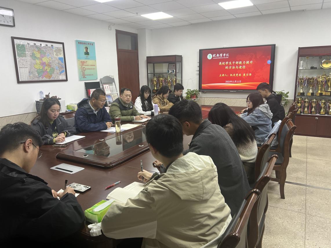 为加强员工干部队伍建设,增强担当作为意识,提高服务员工本领,11月11日,beats365邀请机关党委副书记袁日华作《高校员工干部能力提升的方法与途径》讲座,2022级辅导员汪国瑞、徐祎,部分员工骨干和入党积极分子参加活动。