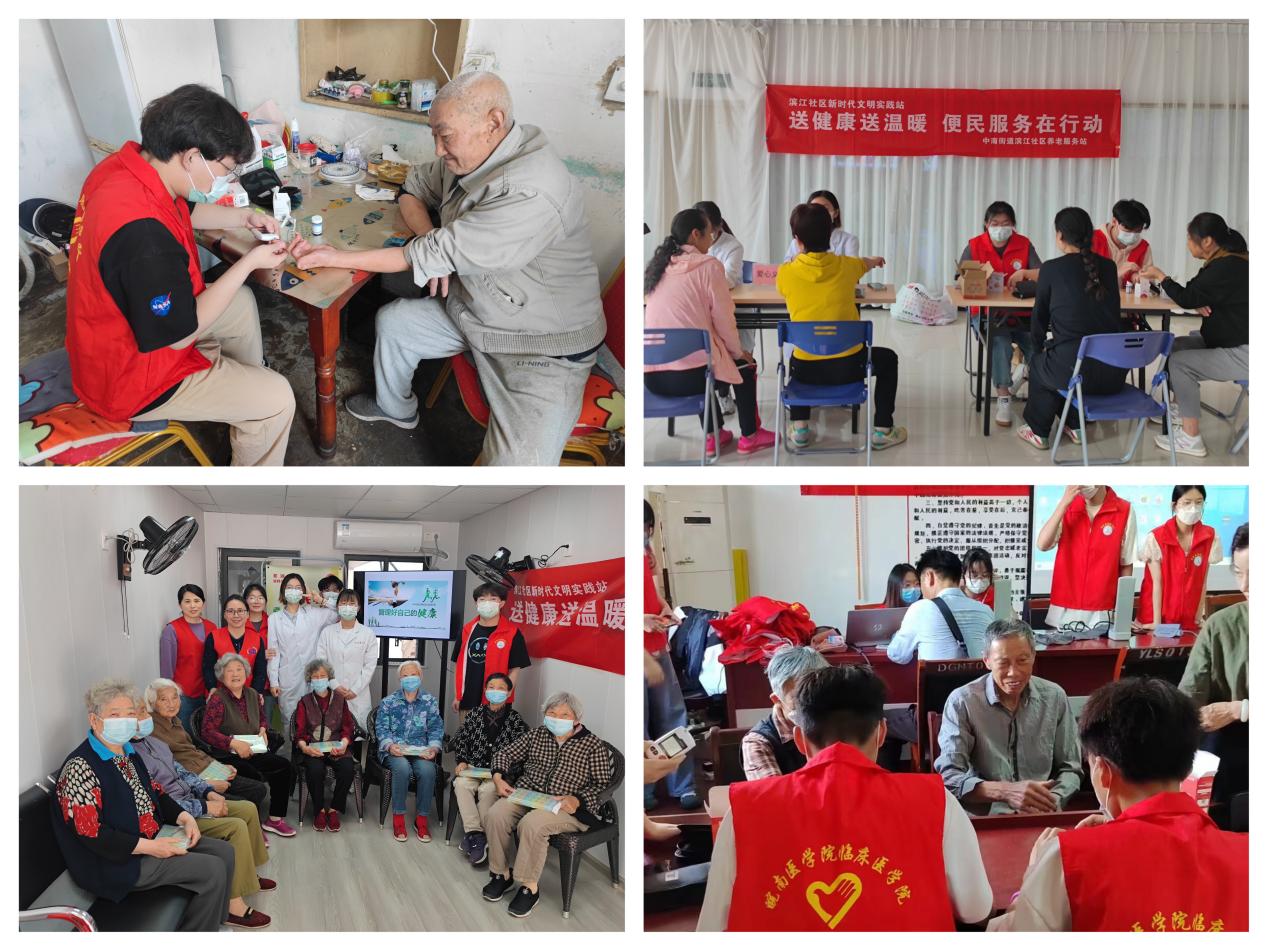 5月12日和14日,党支部组织入党积极分子分别前往滨江社区党群服务中心和碧桂园社区党群服务中心活动室开展健康义诊、中老年人健康管理讲座等活动。活动中,志愿者们耐心与老人们沟通交流,了解老人的身体状况、既往史和用药情况等,为他们提供测血糖、血压等服务,并针对中老年人群常见的慢性疾病开展健康讲座。同时,志愿者们还为行动不便的老人提供上门义诊服务,获得了社区工作人员及居民们的一致好评。