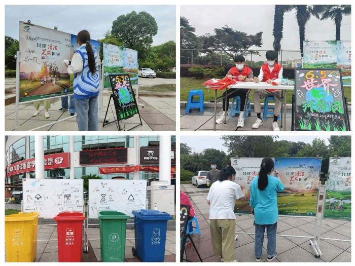 活动伊始,志愿者们在校内设置了宣传咨询点、悬挂宣传标语、设置宣传展板,向同学们普及“六五世界环境日”相关知识,传播生态文明理念,并邀请同学们进行垃圾分类的实践活动,使大家更直观地认识到垃圾分类的重要性,提高保护环境的意识。