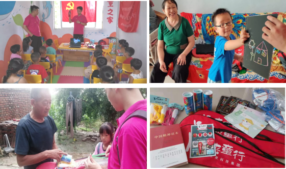 61名同学带着爱心背包走进宣城东桥社区、黄山市歙县北岸镇北岸村、黄山市黄山区儿童之家--阳光幼儿园等地,去寻找家乡需要帮扶的贫困留守儿童,对他们开展一对一心理辅导、学习辅导、防溺水讲座、急救知识科普等活动,赠送孩子们爱心大礼包。