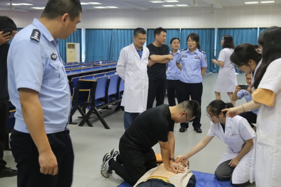 此次活动分为急救创伤技术之心肺复苏(CPR)科普知识讲座、现场培训和互动交流。beats365教工党支部书记柴智明副教授作了“心肺复苏”的专题讲座,参与活动的教工党员分组对警察培训公司的学员进行了心肺复苏操作培训与交流,活动受到了学员们的充分认可和一致好评。