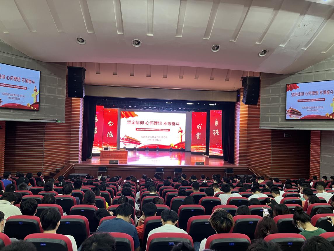傅万山以“坚定信仰,心怀理想,不懈奋斗”为题,从专题党课的“四个讲清楚”和党的二十大报告“六个必须坚持”两个方面着手,对习近平新时代中国特色社会主义思想和党的二十大的战略部署、目标任务作了全面系统讲解,帮助同学们了解世界发展变革历史,认识中华民族从站起来、富起来到强起来的伟大飞跃。随后,傅万山结合临床医学专业特色介绍了高校的五大基本职能,并结合当前正在经历的“第四次工业革命”,尤其是人工智能、新材料等领域出现的新变化可能对临床医学医疗方面带来的重大机遇和挑战,提醒同学们密切关注医疗科技领域的新变化,做好自身职业规划。傅万山还结合党的二十大报告中关于国防和军队建设的重要表述,引导同学们厚植爱国情怀,立大志、明大德、成大才、担大任,努力成为担当民族复兴大任的时代新人。