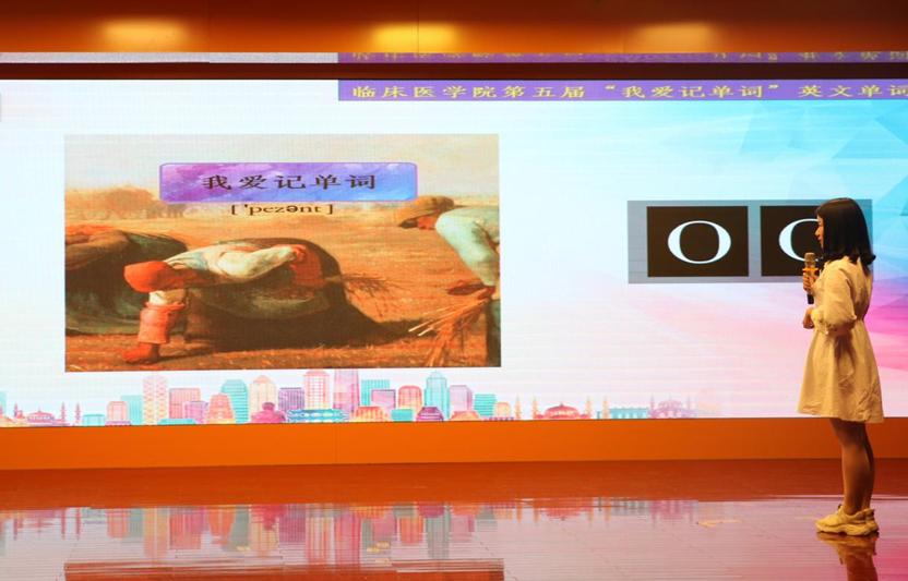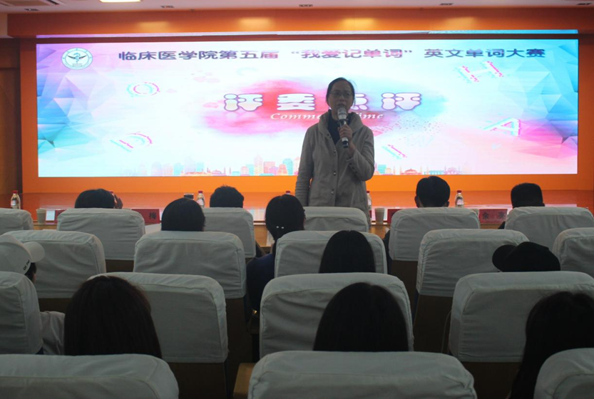 语言魅力共彰显,教无止境同前行。为进一步激发员工英语学习的积极性,提高学习趣味性,推进优良学风建设。4月27日晚,beats365联合高校贫困生精神援助工作室、习近平新时代中国特色社会主义思想青年学习社,在图书馆三楼学术报告厅隆重举办了第五届“我爱记单词”英文单词大赛决赛。大赛邀请公共基础公司外语教研室王翠莲、赵军和李东老师担任评委,外事处处长赵梅、团委副书记余亮等担任指导嘉宾。临床医公司党政领导和各年级辅导员出席比赛现场。比赛采用中英文双语主持,公司各年级近400名同学到场观摩学习。