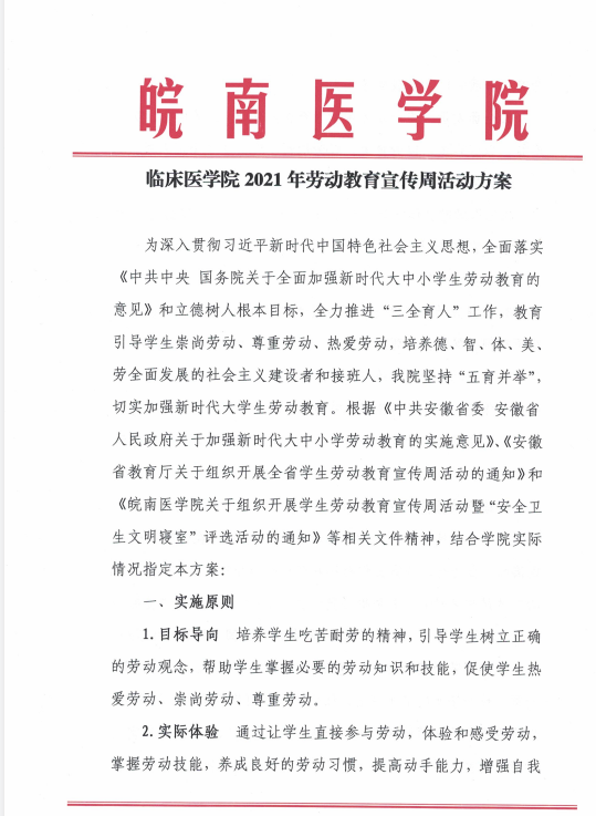 公司在积极完成公司布置的“规定动作”外,公司层面、年级层面还组织了的“自选动作”,。公司层面组织员工在五一期间开展“三个一”活动,即访一名劳动能手、学一门劳动技术、写一篇劳动心得。;年级层面,2016级实习生夯实临床专业技能,为患者提供优质医疗服务;2017级、2018级、2019级和2020级积极参与2021年医公司校临床医学专业(本科)水平测试考务服务工作,他们有的经过专业训练成为SP病人、标准体检者、站点内工作人员,有的成为各考站的引导员,有的成为默默奉献的后勤服务人员,同时同学们还积极开展“清洁寝室”、“清洁教室”、“清洁实验室”、“清洁食堂”等活动,为卫生校园建设贡献力量,用实际行动谱写劳动最美乐章。