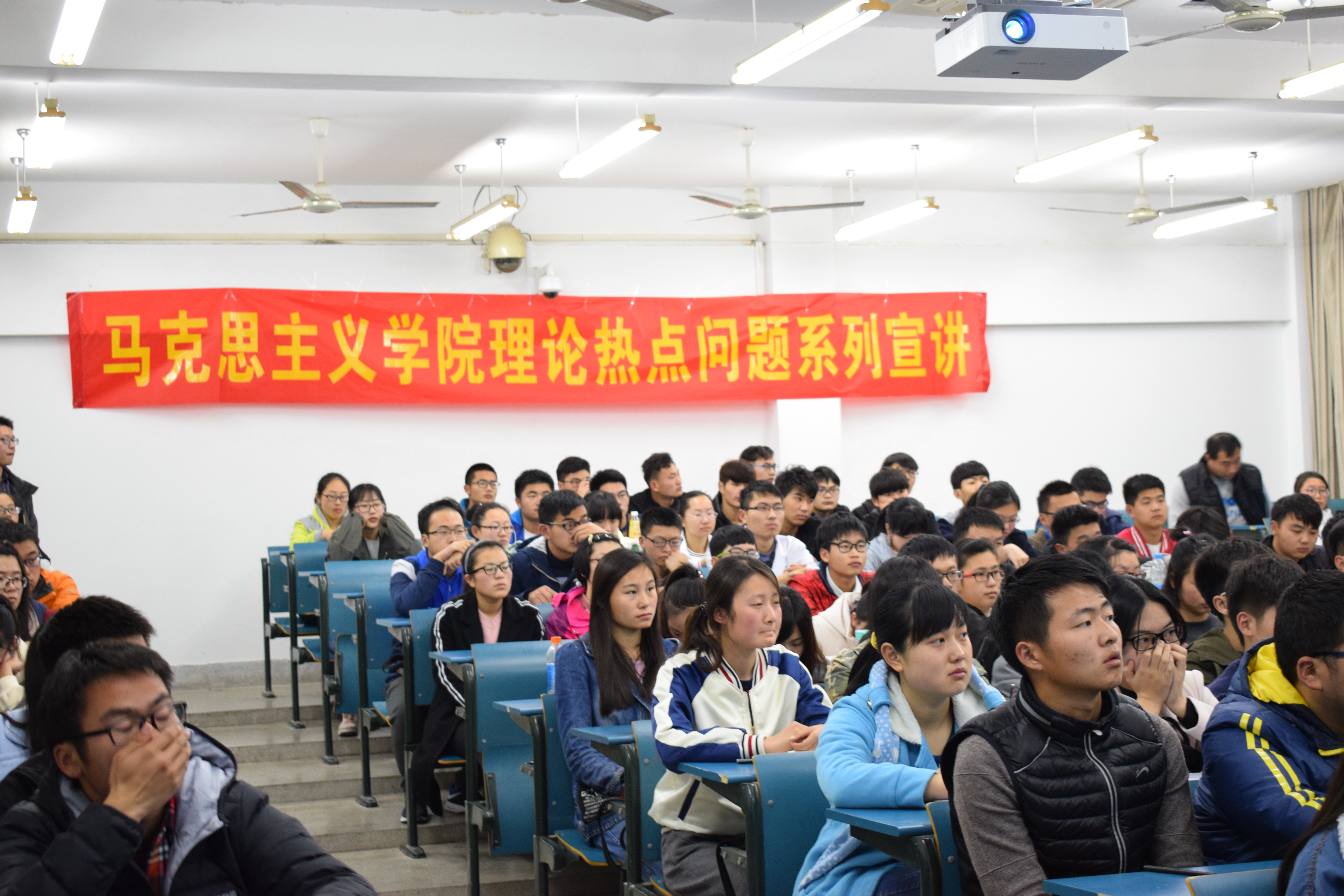 “要想很好的看待未来,必须要认清昨天”。汪教授从过去的2016年发生的国内外热点时事和2017年中国将举办的各大重要会议入手,深入浅出地回答了“对于2017年中国的政治我们有着怎样的期待?”并重点解析了党的十八届六中全会提出的“政治忠诚”概念。汪教授在阐述中国国情和内政的同时,结合当今的国际形势,分析了中国在当今国际上地位的变化,他指出,历史是未来的阶梯,整个社会的发展需要力量去推动,世界需要中国,中国引领“全球”。汪教授最后强调,强有力的领导班子,是带领中国走向全面小康,完成中华民族伟大复兴的最核心力量,每位有志青年都要坚定共产主义信念,坚决拥护中国共产党的领导,深入践行社会主义核心价值观,为实现伟大的中国梦而不懈奋斗。