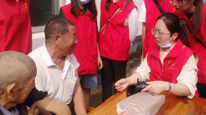 深怀敬老之心,倾注爱老之情,笃行为老之事。7月19日,“春芽”志愿服务队颍上小分队前往垂岗乡慰问孤寡老人,将爱心送进敬老院,更将温暖送进老人心。活动当天,志愿者们不仅为他们送上米、面、食用油及洗漱用品等生活用品,也为老人提供血压测量、剪指甲、打扫卫生等生活服务,同时还与他们聊天谈心,为他们缓解疫情、汛情带来的心理压力,提供健康知识咨询等,活动现场欢声笑语、其乐融融,受到了老人的一致好评。