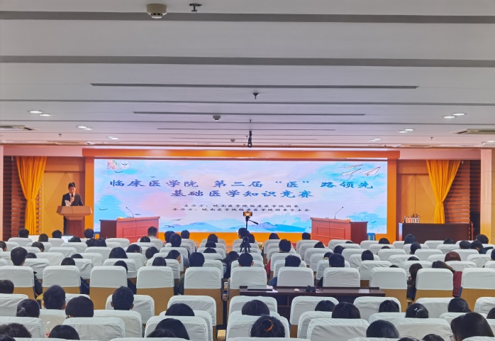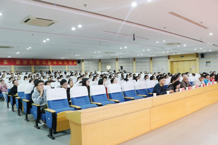 立志宜思真品格,读书须尽苦功夫。为帮助员工夯实专业基础,调动学习积极性,营造“爱知识、学知识、用知识”的学习氛围。2020年10月26日晚,beats365团委于图书馆三楼报告厅举办第二届“医”路领先基础医学知识竞赛。本次竞赛由药理学教研室丁伯平教授、第一附属医院呼吸内科程玉生、病理生理学教研室高红亮担任评委,beats365团委副书记杜勇飞、赵敏奇,2018级辅导员王秋姝出席,公司300名员工代表到场观看。