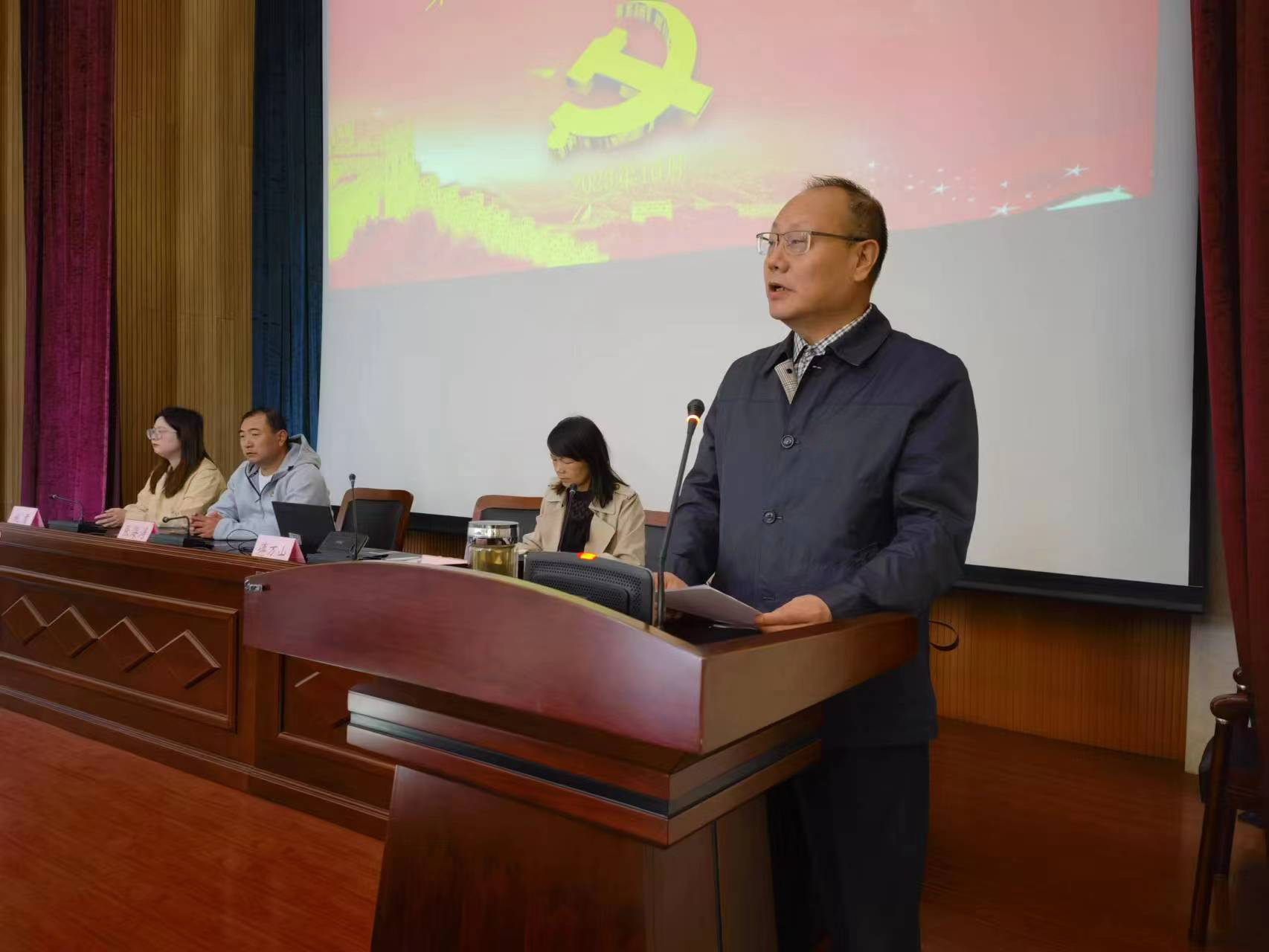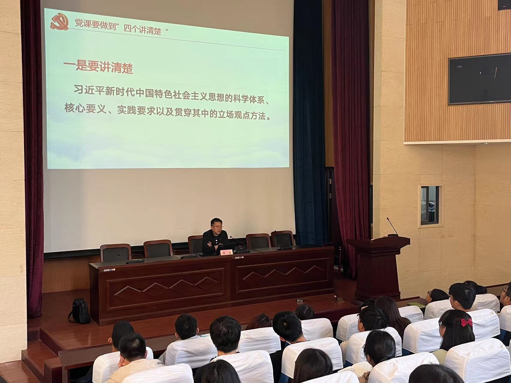 专题授课中,傅万山作“学习贯彻党章、坚定初心使命”党课报告,他从党的二十大修改党章的必要性、党章修改工作主要特点、新党章主要修订内容、新党章全文学习解读出发,向同学们说明了党章修订对于完善习近平新时代中国特色社会主义思想的科学内涵和历史定位的重大意义。