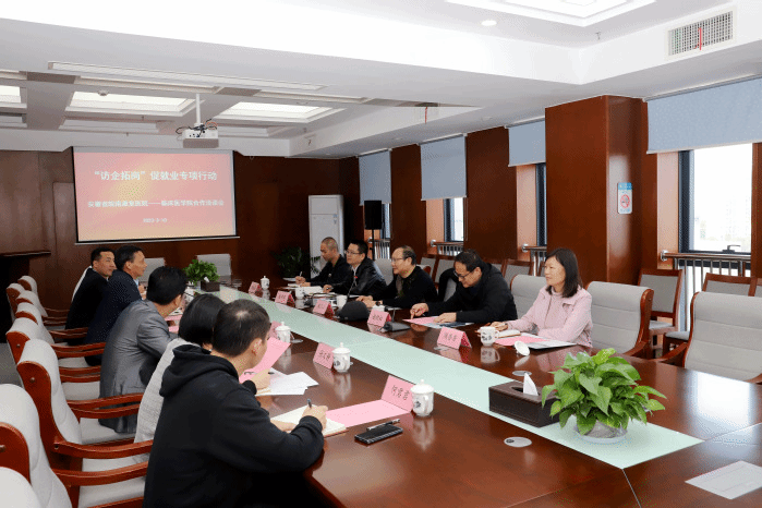 为贯彻落实教育部关于“访企拓岗促就业专项行动”工作部署,探索校院双方深度合作,为毕业生开拓更多的岗位和机会,3月10日下午,临床医公司党委书记傅万山、医学影像公司经理赵劲松、beats365副经理陈祥攀、党委副书记陶香香一行5人赴皖南康复医院开展访企拓岗工作,受到医公司党委书记林炳来、经理倪白云的热情接待。