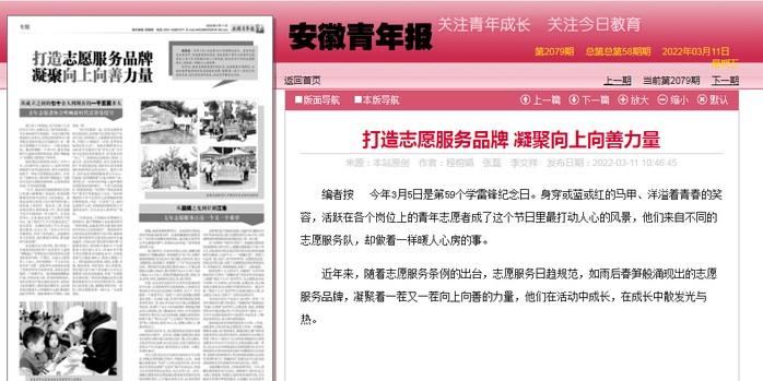 《安徽青年报》报道截图