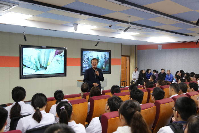 手术结束后,章尧与一附院手术室的专家们进行现场连线通话,对临床教学团队为本次教学活动顺利开展,并取得很好效果所作出的努力表示赞赏;他充分肯定了beats365与一附院对早临床教学模式的积极探索;指出通过手术远程交互的直播教学,可以解决手术室空间有限、观摩人数受限等问题,让员工与临床真正做到零距离。章尧书记还和观摩现场员工进行了交流,他希望同学们能珍惜公司信息化教学建设成果,扎实做好理论知识与实践技能的学习,为今后走上临床工作岗位打下坚实基础,努力成为国家卫生事业的建设者,人民身心健康的守护人。