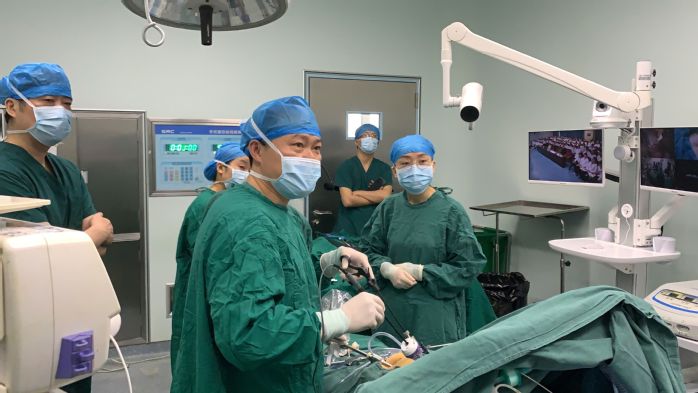 本次手术内容为腹腔镜胆囊切除+胆总管探查术,由一附院肝胆外科临床教学团队施行,王小明教授主刀并讲解。校本部学习观摩现场,外科手术学课程负责人柴智明教授配合讲解。腹腔镜手术具有创伤小、恢复快的优点,但术野有限,不利于教学示范。本次直播运用可移动手术直播平台,将一附院手术室画面实时传输到校本部实验中心智慧交互室,同学们通过大屏幕,对手术全景、术野特写、以及腔镜画面进行多视角学习观摩。王小明教授针对观摩的低年级员工,边手术边讲解;他结合手术过程对胆囊三角等解剖结构,胆汁循环途径,胆囊切除后胆总管代偿性扩张等生理机制进行深入浅出的讲解;王小明教授还对员工进行了医德教育,他说,作为一名外科医生,要关爱患者,做到“慎于术前、精于术中、勤于术后”;术中要注意“防感防瘤”。手术结束后,他与观摩员工进行了互动,对同学们提出的问题,引经据典,旁征博引,将最新科研数据与临床进展传授给员工。