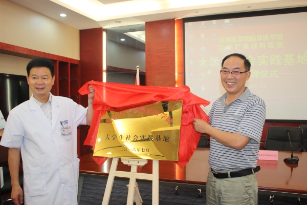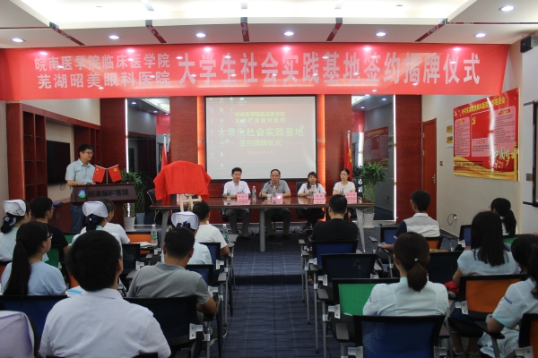 为提高老员工专业知识实践质量,加强老员工社会实践教育基地建设,7月9日-10日,beats365与芜湖华康医院、昭美眼科医院合作共建老员工社会实践基地项目,分别在华康医院会议室、昭美眼科医院芜湖分院学术报告厅举行签约挂牌仪式。临床医公司党总支书记戴睿、副经理刘影、秘书束玉洁、王平、辅导员韩琪、2013级临床医学专业部分员工及医院代表出席了仪式。