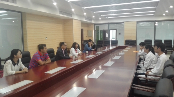 在技能培训中心会议室,公司领导首先与一附院教育处主任徐艳老师进行了交流,了解四位参赛选手的训练进展情况,听取了带教专家反映的意见和建议。随后,老师们与张刘会、杨成、李焱和未亚兰四位同学进行了亲切的交谈。戴睿代表公司首先肯定了四位同学为备战付出的努力,带去了公司全体师生的问候和关心;他希望同学们能够注重团队合作,充分发挥个人水平;注重细节,体现临床思维;劳逸结合,赛出最佳水平。最后预祝四位选手赛出水平、赛出风采,在全国赛的舞台上再创辉煌,为公司争得荣誉。