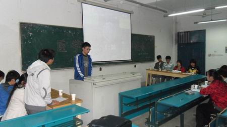 为培养同学们的合作精神,锻炼大家的口才,在经过第一、二轮的年级辩论选拔赛之后,4月24日晚6时,医学一系2009级团总支、员工会在西教学楼104教室举行了年级辩论赛总决赛。