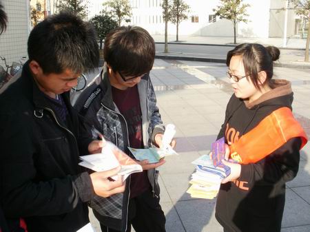 “阳春三月,血热情浓”,为宣传无偿献血知识,带动更多的同学投身于无偿献血这一爱心事业。3月20日,医学一系2009级青年志愿者们在食堂门口开展了无偿献血知识宣传活动。