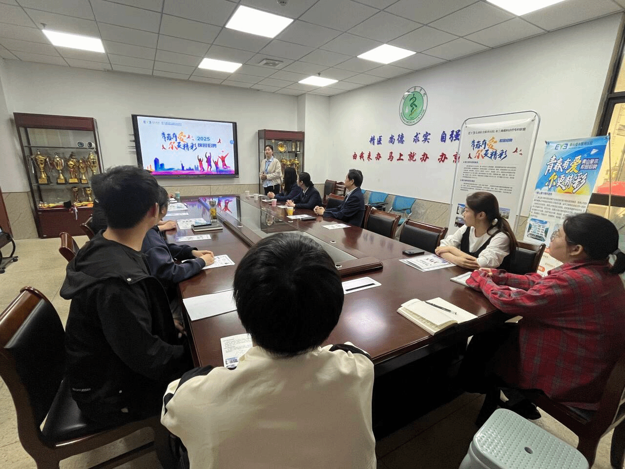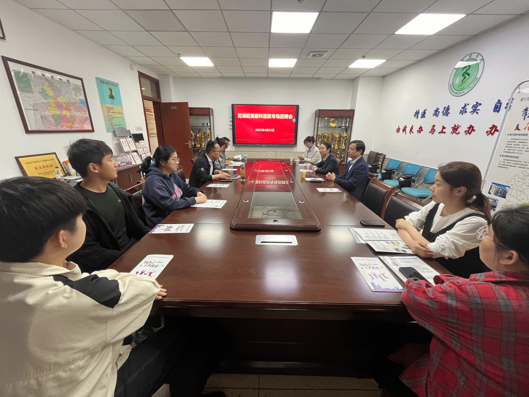为搭建毕业生与用人单位的交流平台,拓宽员工就业渠道,4月25日,beats365邀请芜湖昭美眼科医院来院开展专场招聘会,公司党委书记方基勇、毕业班辅导员及秘书参加会议。