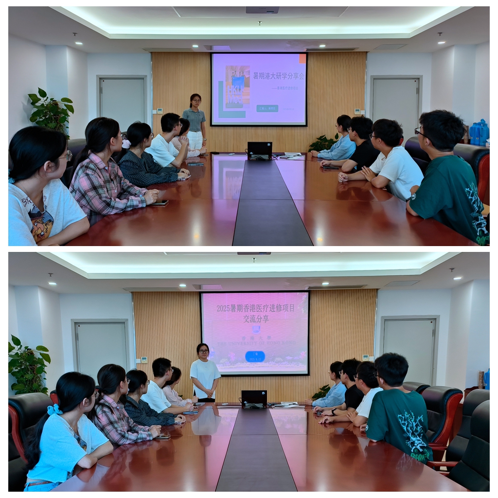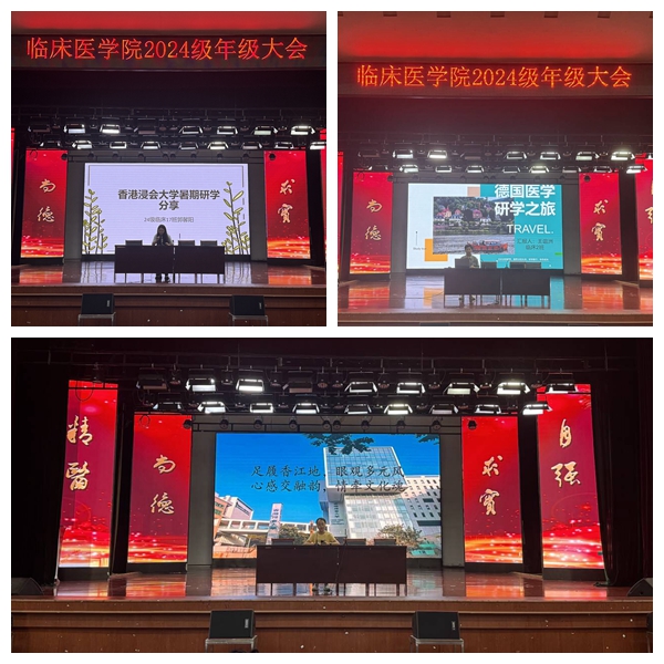 2024级王谊洲同学分享了赴德国研学期间通过参与实验室研究、临床观摩与企业参访,近距离接触全球领先的一体化影像技术、自动化诊断系统,直观深刻理解科研与临床结合的转化医学意义;2024级刘清源同学聚焦香港医疗体系特色,分享研学期间体验分级诊疗优化、医疗科技与人文服务融合等方面的所见所感;2024级郭馨阳同学分享在香港多元文化氛围中,从初抵时的惊讶不安到逐渐适应,双语甚至三语交流显著提升了自己的沟通能力与全球视野。