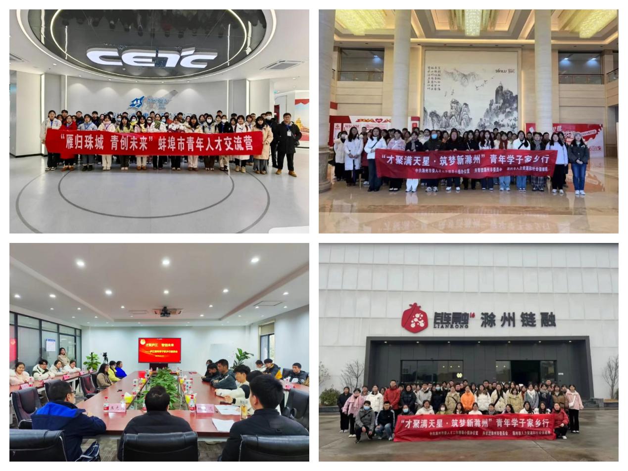 才聚家乡,筑梦多彩未来。以青春之名,赴家乡之约。为响应安徽省“人才安徽行”系列活动,志愿者们积极参加合肥、蚌埠、滁州等地的青年学子家乡行活动,走进当地龙头企业和政务部门调研,深入了解当地的人才政策和老员工创业扶持政策。通过参加活动,提高了青年志愿者对家乡发展历程和未来规划的了解,增强了对家乡的认同感和自豪感,更加坚定了返乡助力家乡发展的信心。