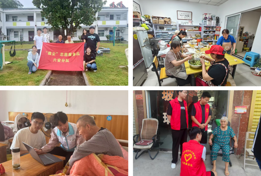 老年爱心陪护,关怀常伴夕阳。敬老爱老是中华民族传统美德,“微尘”志愿队六安、淮北、安庆分队专程走进当地养老院及社区老年活动中心,开展暖心陪护服务。志愿者们与老人促膝长谈、唠家常,细致了解他们的生活需求与健康状况;帮助老人打扫房间、整理内务,营造整洁舒适的居住环境;精心准备歌舞表演、趣味故事分享等节目,为老人们的晚年生活增添了欢乐,让他们真切感受到社会的关怀与温暖。