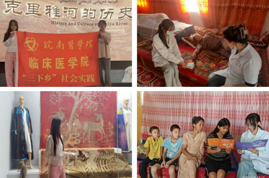 专项团队助力,籽籽同心拼图。在文化传播与民族团结方面,“微尘”志愿服务队成功入选“石榴行祖国行”专项社会实践团队。志愿者们带领当地员工参观于田县博物馆等红色遗迹,通过实物展览、历史讲解,引导员工感悟先辈奋斗精神;队员迪丽娜孜结合自身成长经历开展红色宣讲,增进各民族员工的认同感与凝聚力。在于田、和田两地,通过民族歌舞表演、传统手工艺品展示等形式,展现多元民族文化魅力;同时组建“三下乡”健康服务队走进乡村,普及卫生健康知识,为当地居民健康保驾护航。