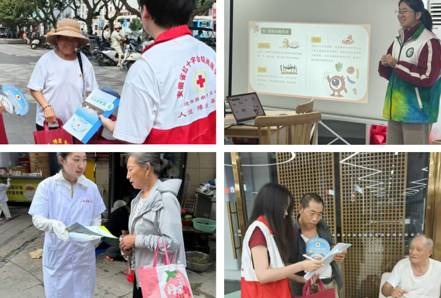 医疗知识宣讲,传递健康理念。为进一步传播健康理念,“微尘”志愿服务队在马鞍山、黄山、阜阳等地的广场、社区等公共场所开展医疗知识宣讲活动。志愿者们通过展板展示、手册发放、现场答疑等形式,重点普及高血压、糖尿病等慢性病的防治知识;同时围绕无偿献血的意义、流程及注意事项进行宣讲,动员更多健康人群参与公益献血,用实际行动为生命救援搭建“爱心桥梁”。
