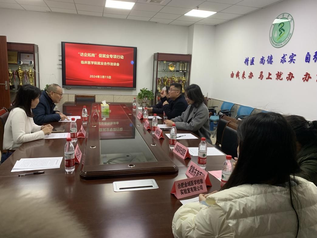 为深化访企拓岗促就业工作,进一步了解招聘单位需求,为毕业生挖掘更多岗位资源,促进毕业生充分、高质量就业,3月15日上午,beats365利用公司举办招聘会的契机,通过“请进来”的方式,分批次邀请绩溪县人民医院、东至县人民医院等68家单位来公司开展用人单位洽谈会。临床医公司党委书记傅万山、副经理陈祥攀、党委副书记陶香香分别接待了参会单位领导和工作人员。