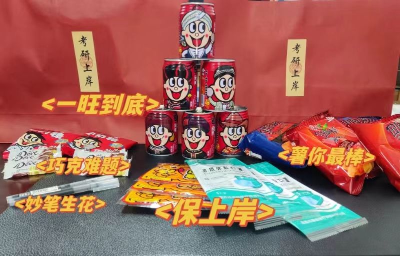 随后,老师们为考研学子送上了暖心的“考研上岸”大礼包,礼包承载公司着对考研学子的美好祝福,包括“妙笔生花”、“一旺到底”、“巧克难题”、“薯你最棒”、“保上岸”五件套,寓意威“五”霸气,一举夺“葵”。热情的问候、贴心的礼包,让同学们备受鼓舞,大家纷纷表示一定会拿出最好状态冲刺备考,奋力拼搏、成功上岸。