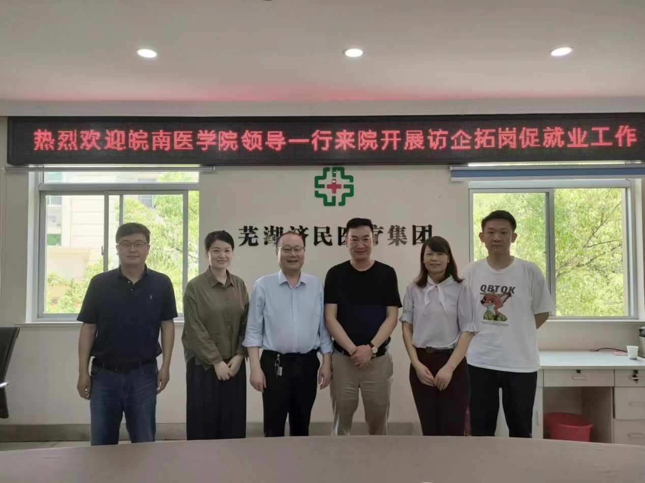 为积极落实公司关于开展2023届毕业生就业“百日冲刺”行动的文件精神,进一步拓展搭建就业平台促进毕业生就业,6月8日,临床医公司党委书记、副经理傅万山,党委副书记陶香香等一行3人赴无为济民医院洽谈就业相关事宜。