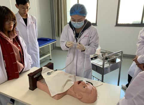 11月1日-11月10日,2019级技能协会成员分别以班级为单位,搭建同伴交流互助平台,由各班优秀会员组织相应班级的其他同学开展胃管置入术的培训,对胃管置入术的操作目的、操作流程及操作中的注意事项等进行了阐述和示教,指导教师黄馨全程指导。