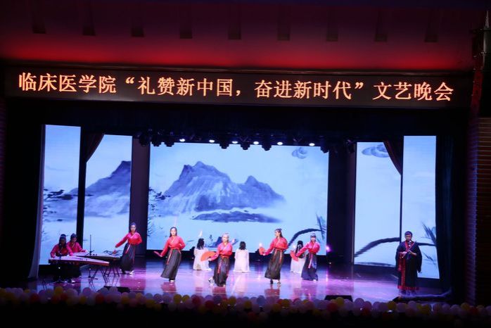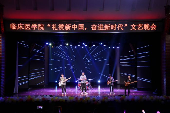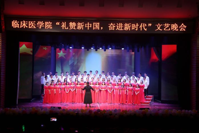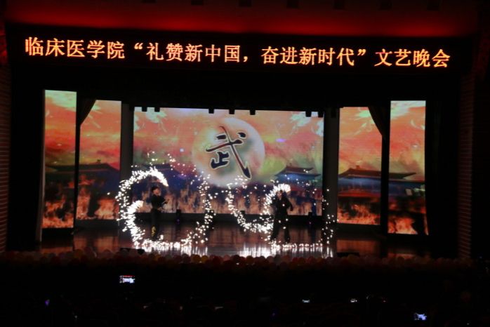 整场晚会节目类型丰富多样,包括歌曲串烧、舞蹈、诗朗诵、乐队表演、武术等。诗朗诵《扬帆临床,追梦中华》深情演绎了临床学子对知识的孜孜以求、对优秀品格的笃行致远,展现了临床学子“丹心寄白云,青春献杏林”的时代担当;热情洋溢的现代舞《Heart shaker》用热情似火的舞步,彰显青春活力,展现出老员工的蓬勃朝气与独特魅力;歌曲串烧《相信》、《当我们一起走过》,用音乐歌颂似水年华,用歌声谱写追梦青春;相声《以食为天》生动风趣、笑点十足;古典舞《一曲霓裳》、《浪人琵琶》意境空灵、舞若惊鸿,渲染出一幅幅中国水墨画;武术表演《武动青春》英姿飒爽、刚劲有力,展现了临床学子多才多艺、意气风发的少年本色;乐队演奏《国际歌》、《七里香》将现代与经典相结合,一首首熟悉的旋律嗨翻全场;手语表演《国家》表达了同学们怀着一颗自豪、感恩的心,用最诚挚、最虔诚的情感,祝福着中华人民共和国成立70周年。情景剧《五四之火》重现五四浩荡百年的历史荣光,歌颂仁人志士千秋凛然的爱国热情,场下观众无不为之动容;教师歌曲串烧《也曾是少年》将整场晚会气氛推向高潮。最后,晚会在气势恢宏的大合唱《我和我的祖国》中落下帷幕。