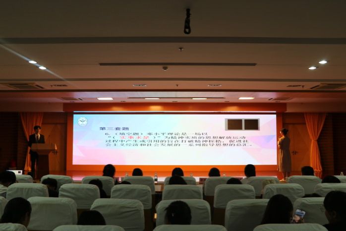 本次比赛共有来自不同年级的240名选手参加,通过精心准备和层层选拔,最终有20名选手脱颖而出晋级决赛。决赛采用单节淘汰制,分为“轮流答题”、“知识抢答”、“主观论述”三个环节,“轮流答题”着重考察选手对近现代历史及政治理论知识的积累情况,参赛选手沉着应对、从容作答,最终12名选手进入第二环节;“知识抢答”侧重考察选手对知识的熟悉程度以及反应能力,选手们屏息凝神,激烈抢答;“主观论述”则对选手们的知识应用能力提出更高的要求,6名选手条理清晰、侃侃而谈,结合习近平新时代中国特色社会主义思想,联系学习生活实际阐述观点,尽显扎实功底和青春风采。