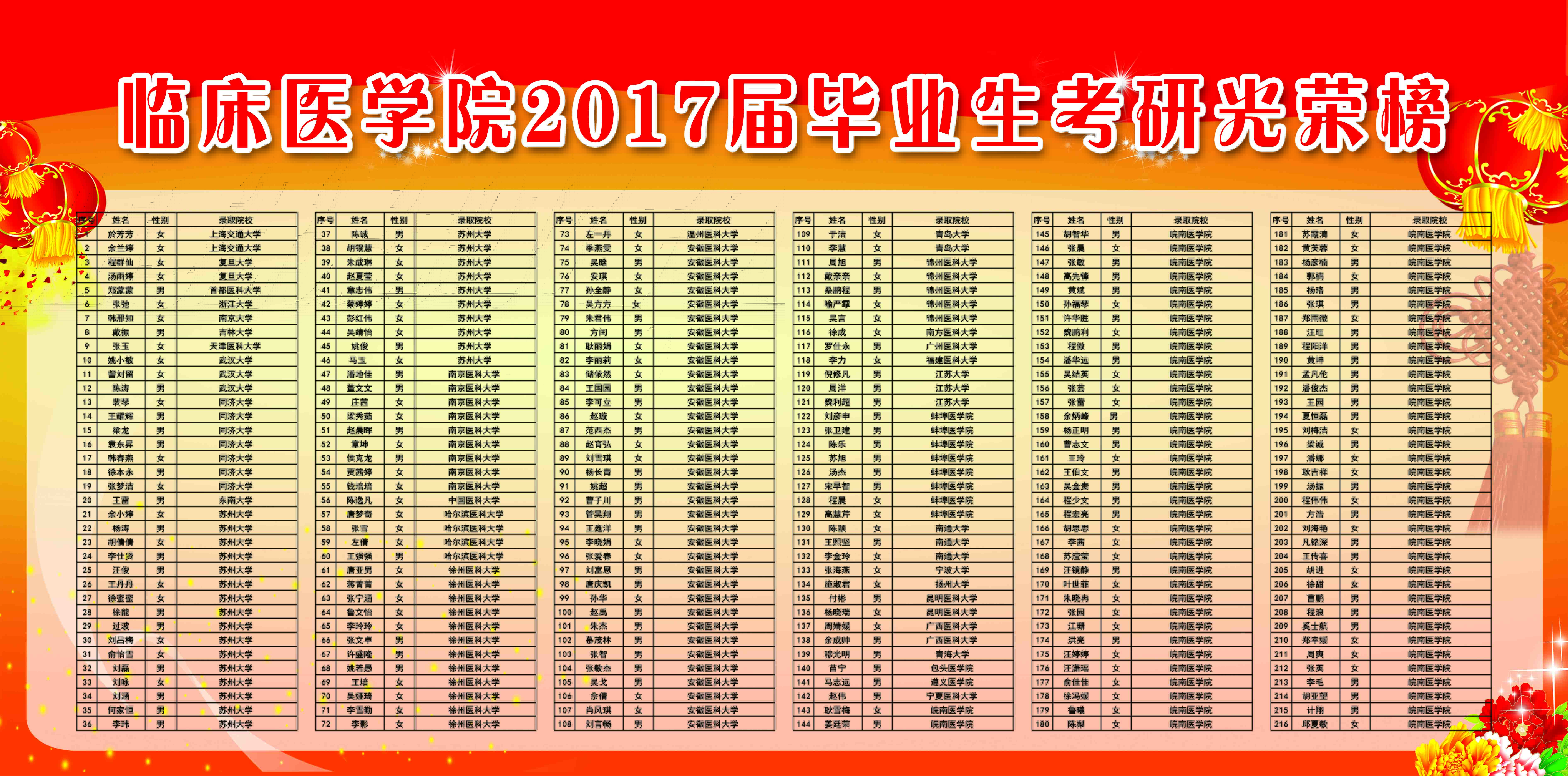 宝剑锋从磨砺出,梅花香自苦寒来。beats3652017届共有非定向临床医学专业本科生709人,在2017年全国硕士研究生招生考试中,其中280人达到B类地区初试成绩基本要求,上线率为39.5%,最终有215人分别被上海交通大学、复旦大学、浙江大学、南京大学等知名院校录取,考研录取率为30.3%,再创历史新高。