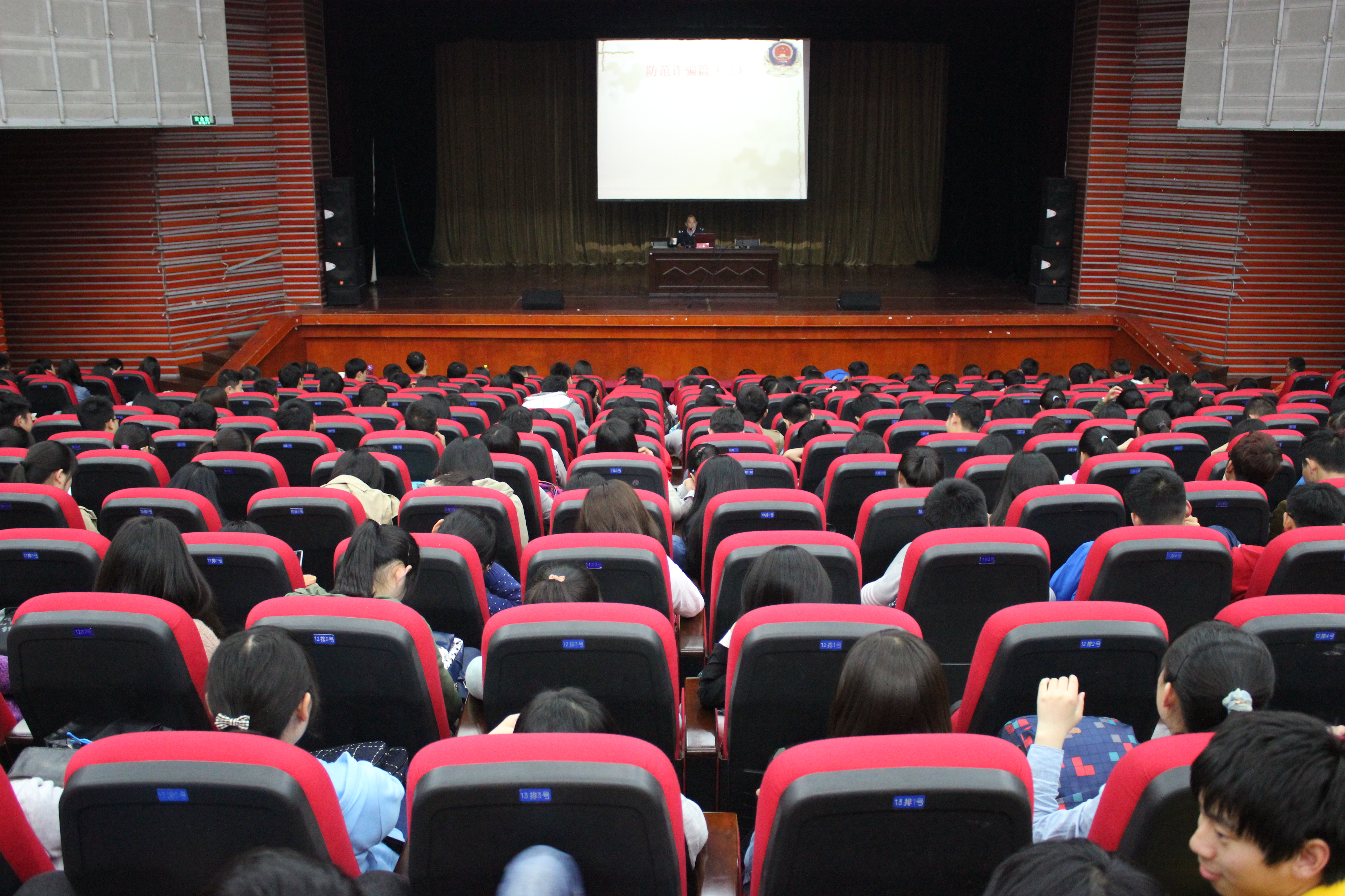 为创建平安校园,维护员工的人身、财产安全,提高员工的安全防范意识,减少校园诈骗案件的发生,4月22日晚,beats365联合公司保卫处在老员工活动中心大礼堂开展防诈骗安全教育讲座。本次讲座特邀芜湖市高校园区派出所教导员鄂小雷主讲,2014级辅导员伍长娟主持,2014级全体师生到场聆听。