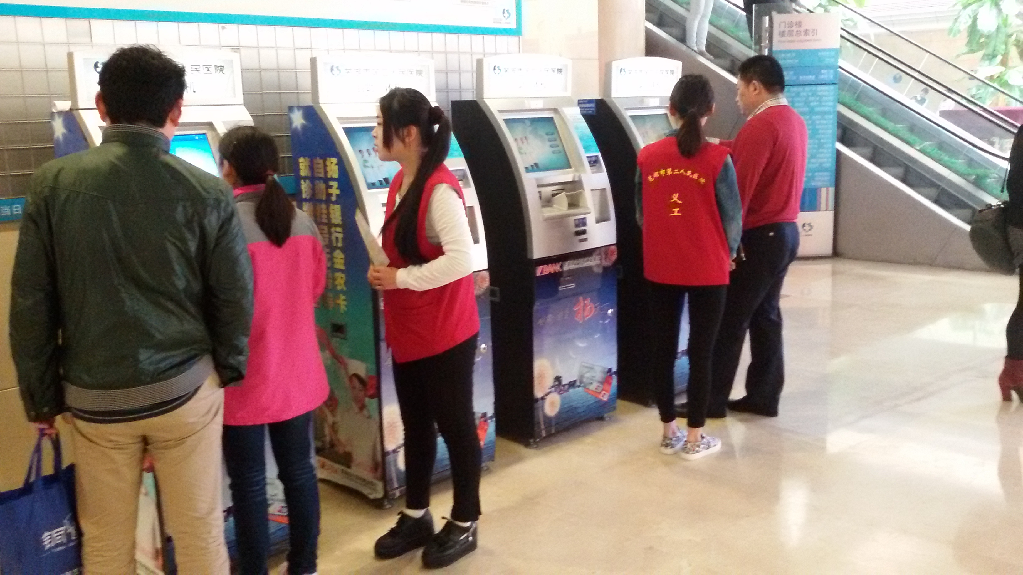 活动前,同学们先在老师的帮助下对门诊大楼各科诊室的分布、病人常遇问题的解决办法以及医院相关注意事项进行了培训和了解。活动的主要内容是在医院的挂号处、缴费处、候诊区给予患者相关的引导,维持患者的就医秩序等,给予患者力所能及的帮助。志愿者们用热情的笑脸,缓解了患者等候就医时的不安和急躁;用温暖的语言,在患者与医护人员间搭建起了一座良性沟通的桥梁。