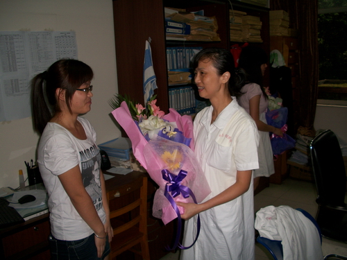 为庆祝第27个教师节,在上海市第五人民医院学习的医学一系2008级同学于9月9日清晨,带着鲜花和祝福来到科教科老师的办公室,向勤恳耕耘的老师们送上最衷心的祝愿和最诚挚的问候。