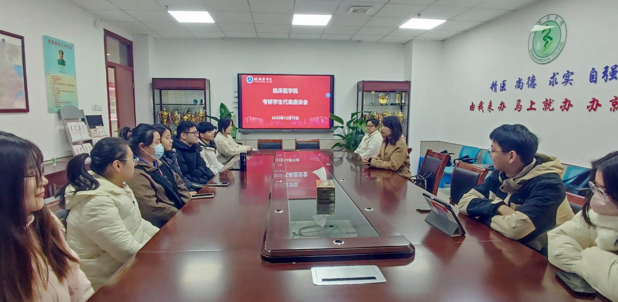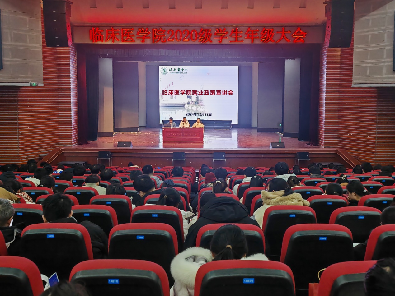 12月22日下午,公司召开毕业班年级大会,对同学们参加研究生考试的情况进行了回顾,对未来的职业发展进行了展望。陶香香通过详实的数据和案例对考研复试准备和就业工作进行指导,分析了往年考研录取和就业数据,详细介绍了住院医师规范化培训、科研助理、参军入伍、西部计划相关政策,引导同学们合理定位,认清当前就业形势,积极提高自身就业能力,争取早就业、就好业。