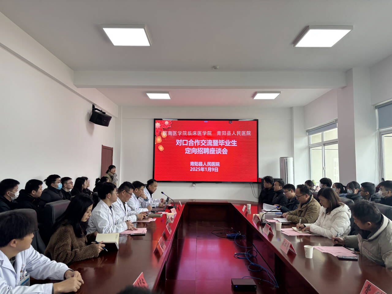 为深入开展访企拓岗工作,拓宽就业渠道,促进人才培养与就业工作有效对接,1月9日下午,临床医公司党委书记方基勇、党委副书记陶香香赴青阳县人民医院开展访企拓岗专项行动,毕业班辅导员及27名2025届临床医学专业毕业生一同前往。