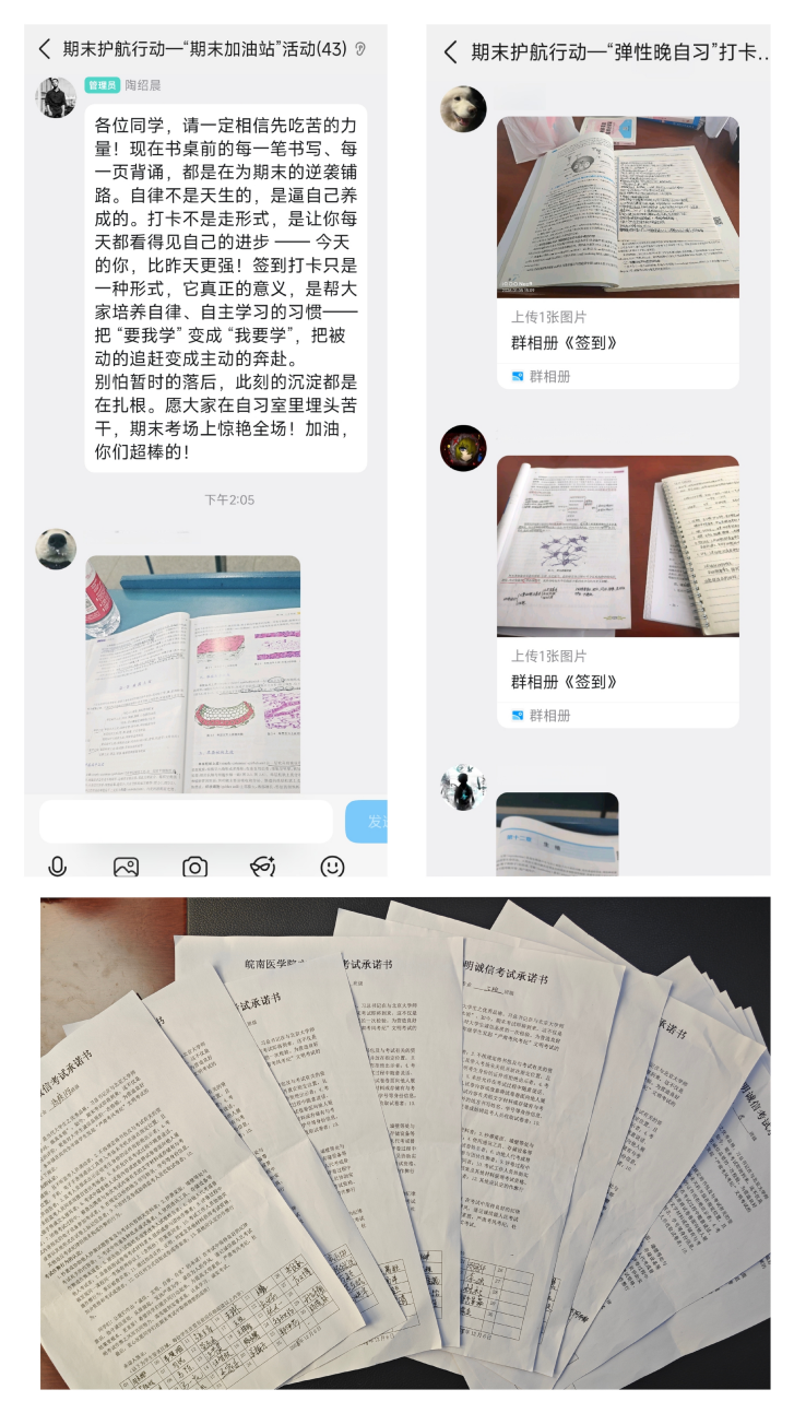 为切实帮助学业困难员工顺利跨越学业挑战,巩固学习成效、突破学习瓶颈,更好迎接即将到来的期末考试,围绕员工成长发展实际和困难困惑,组织召开了期末复习座谈会,经过深入调研和筹备,推出“期末护航行动”晚自习打卡和“期末加油站”活动,营造“比学赶帮超”的良好学习氛围。参会员工表示,将以此活动为契机,克服自身惰性、提高主观能动性,积极向优秀同龄人看齐、多与身边榜样交流,制定适合自己的切实有效的计划,争取学业更上一层楼。同时在期末考试备考期间,全体员工签订《诚信考试承诺书》,以高标准严守考纪、诚信应考,坚决抵制不正之风。