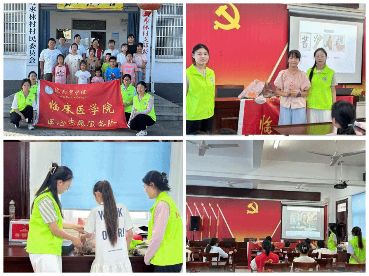 为深入学习贯彻习近平新时代中国特色社会主义思想和党的二十大精神,增强广大青年以实际行动服务基层的责任感和使命感,暑假期间,2022级“医心”志愿服务队赴六安市舒城县开展了一系列丰富多彩的暑期“三下乡”志愿服务活动,以实际行动诠释着“青春筑梦 医路情深”的深刻内涵。